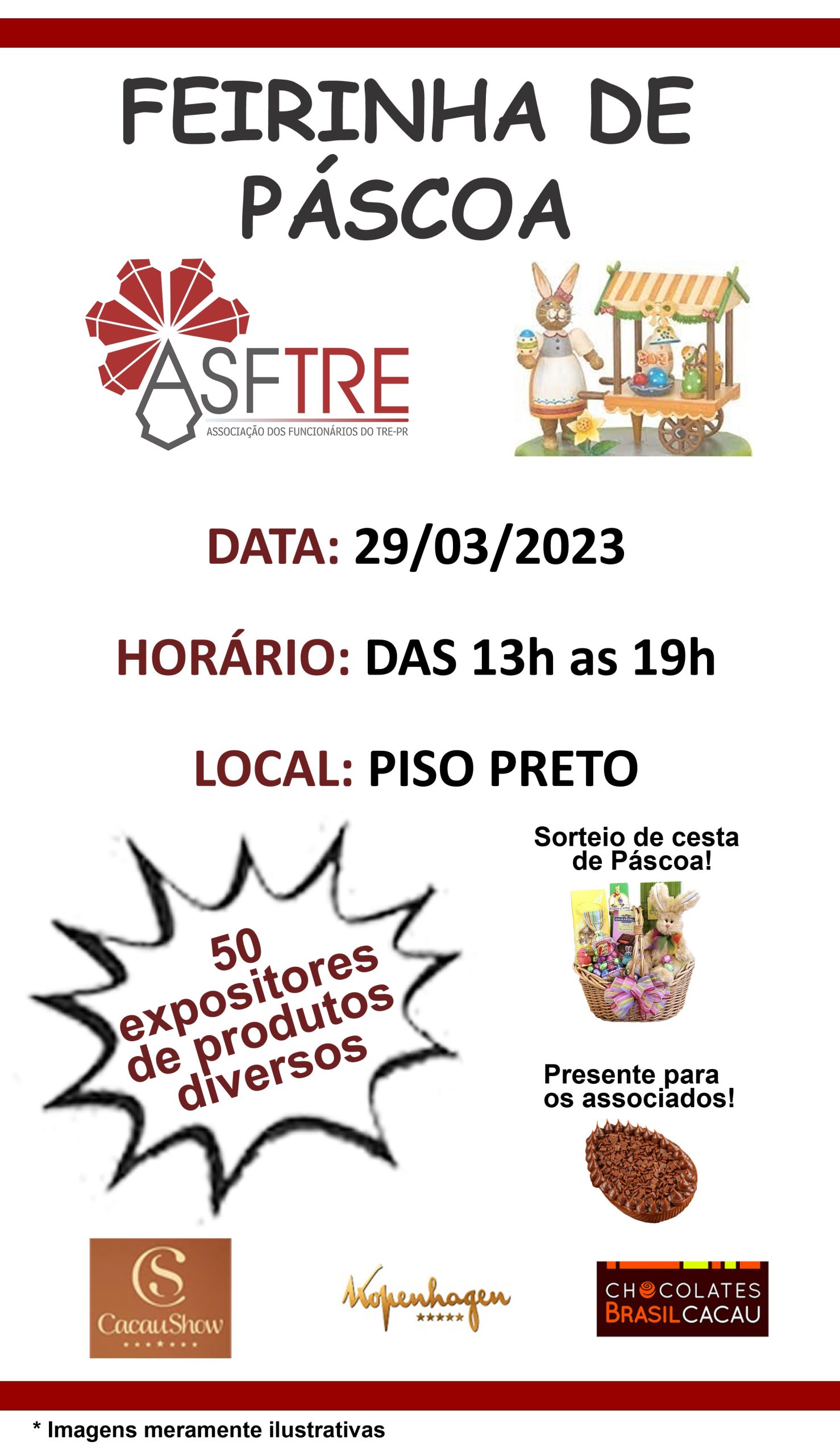 Nesta quarta feira, 29/03, das 13hs às 19hs, acontecerá a maior edição da Feirinha de Páscoa da ASFTRE no piso preto.